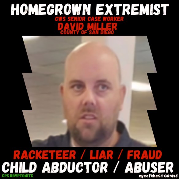 For over a year, David Miller has been destroying my family. He’s not a man. He’s not human. He’s a predator flaunting a badge — hiding behind government power, retaliating against a mother, erasing a grandfather, and conspiring with a fake caregiver to steal children.