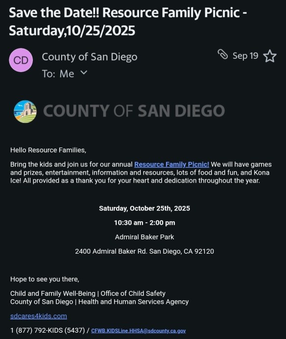 Exhibit A: The County’s “Resource Family Picnic” Invite
