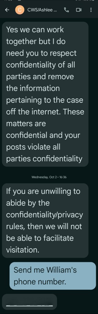 She called me relentlessly, asking for the family’s location — pretending to be an ally. But once the mother was captured, Ashlee Purnell flipped. “Grandparents have no rights in California,” she told me coldly. Then came the threat: take down the blog post, or they’d cut off my visits with my granddaughters. I’m posting her text here so no one can deny what really happened.