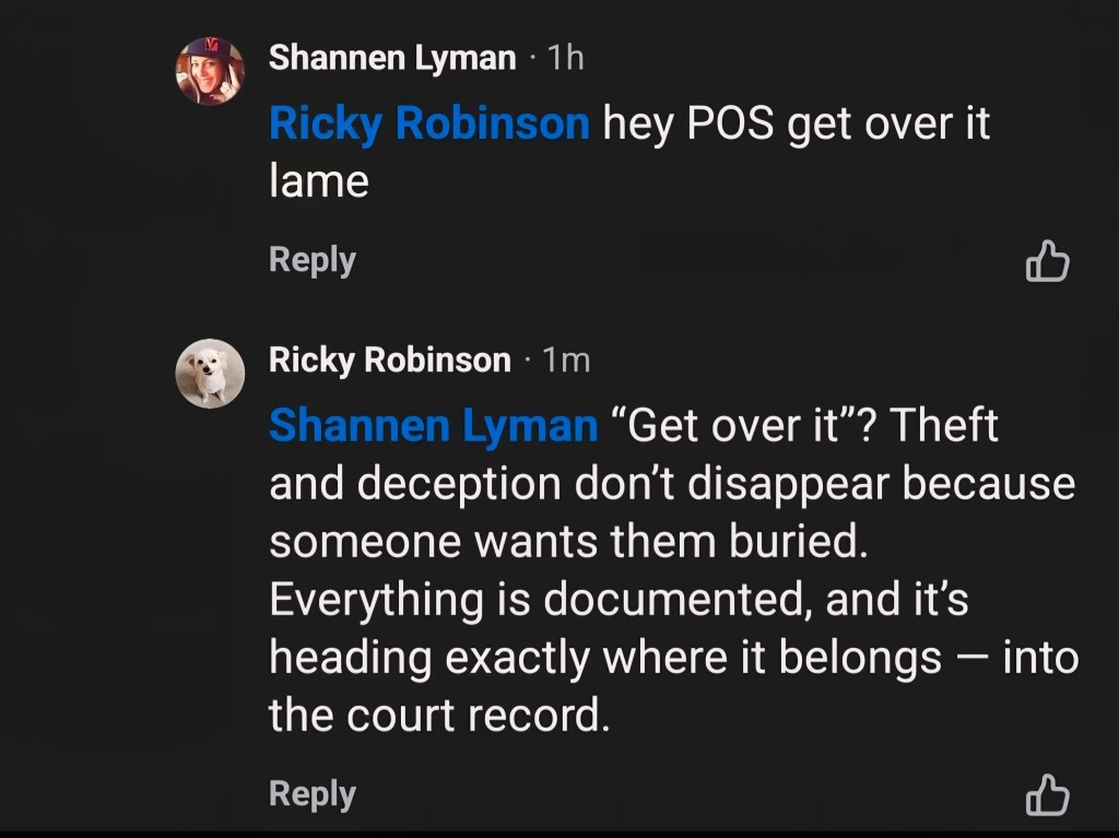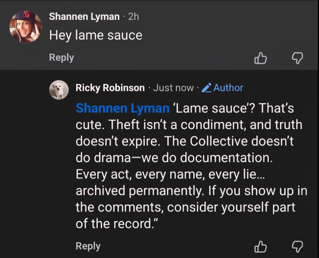 Singer–booker Shannen Lyman steps into the spotlight — publicly defending equipment theft and trolling the original founder. When you stand with a thief, you become part of the story.